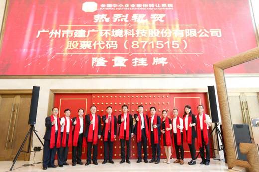 6月26日,市城投集團旗下廣州市建廣環(huán)境科技股份有限公司(證券簡稱:建廣環(huán)境,證券代碼:871515)在北京金融街全國中小企業(yè)股份轉(zhuǎn)讓系統(tǒng)中心隆重舉行“新三板”上市敲鐘儀式。