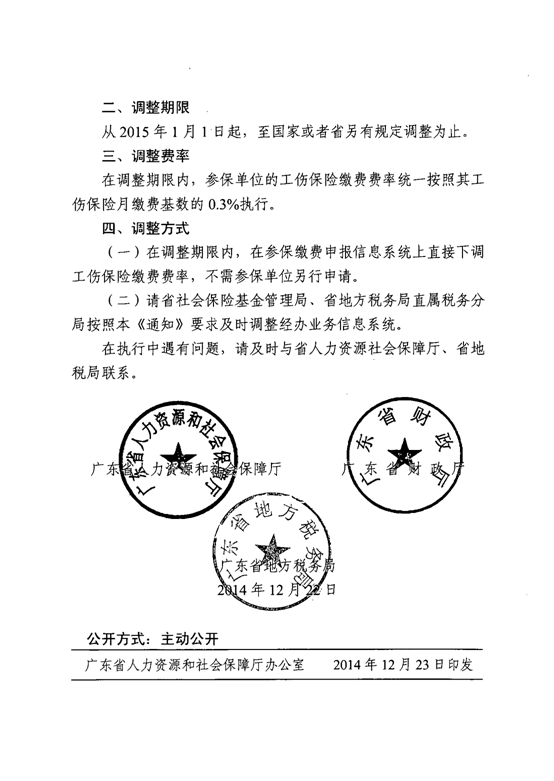 關(guān)于階段調(diào)整省本級統(tǒng)籌參保單位工傷保險繳費費率的通知----粵人社發(fā)〔2014〕249號