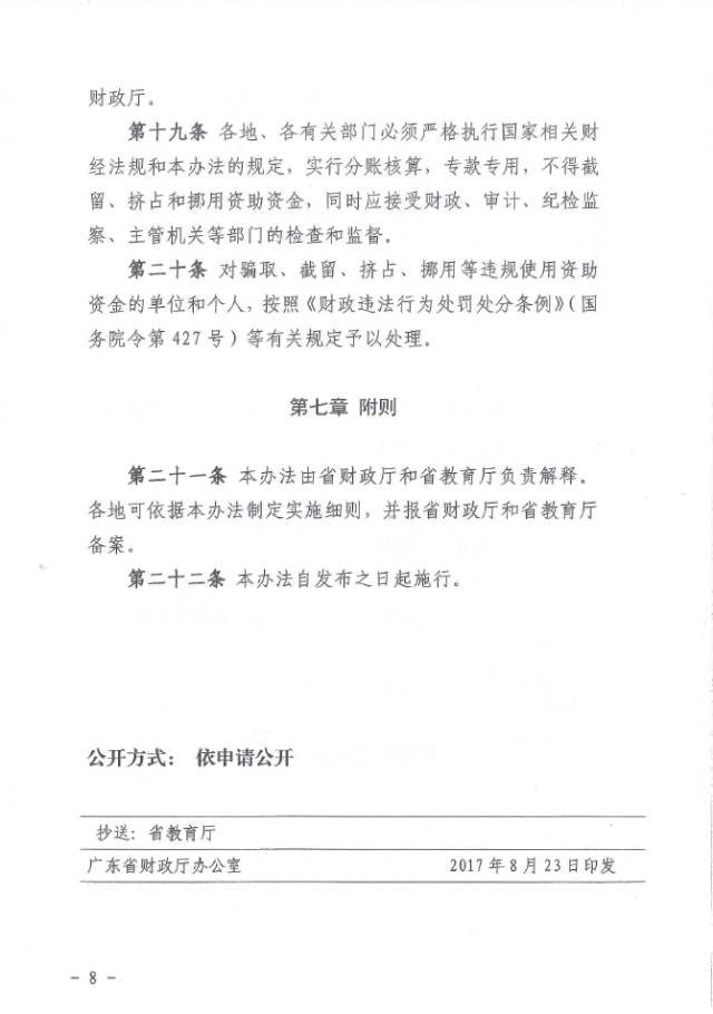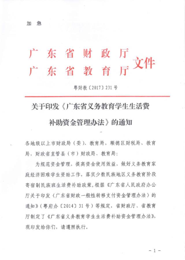 關于印發《廣東省義務教育學生生活費補助資金管理方法》的通知