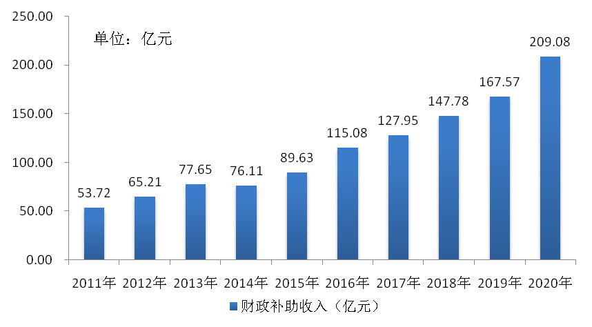 圖8 2011-2020年全市醫療衛生機構財政撥款收入(億元)