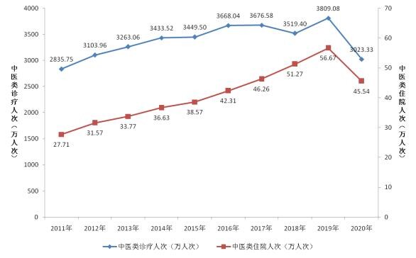 2020年,全市中醫類醫療機構門診服務人次3023.33萬人次,比上年下降20.63%,其中:中醫類醫院1739.88萬人次,中醫類門診部149.34萬人次,中醫類診所類56.62萬人次,中醫類村衛生室110.91萬人次,其他機構中醫類臨床科室966.57萬人次。全市中醫類醫療機構住院服務人次45.54萬人次,比上年下降19.64%。