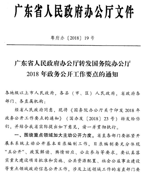 附件:廣東省人民政府辦公廳轉發(fā)國務院辦公廳2018年政務公開工作要點的通知(粵府辦〔2018〕19號)