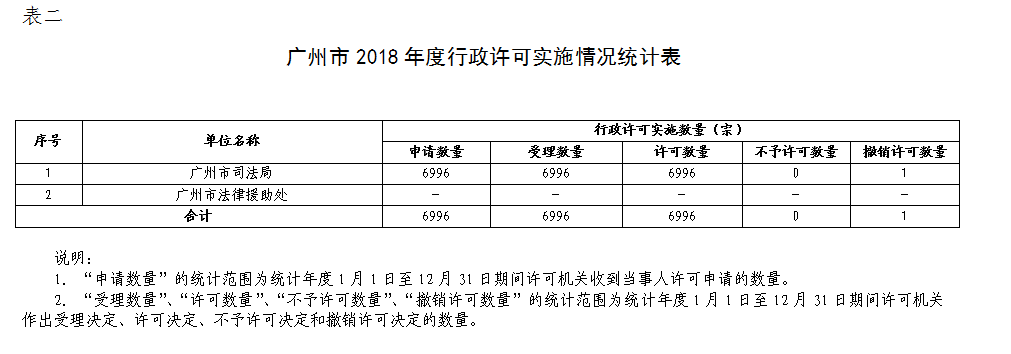 本部門2018年度行政許可申請(qǐng)總數(shù)為6996宗,予以許可6996宗。